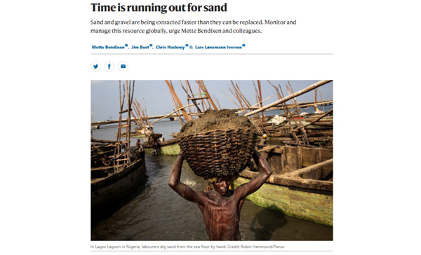 2019年,英國《自然》雜志上發(fā)表評(píng)論《Time is running out for sand》,警醒天然砂石的采掘速度已經(jīng)高于自然恢復(fù)速度,地球上的沙子快不夠用了。
